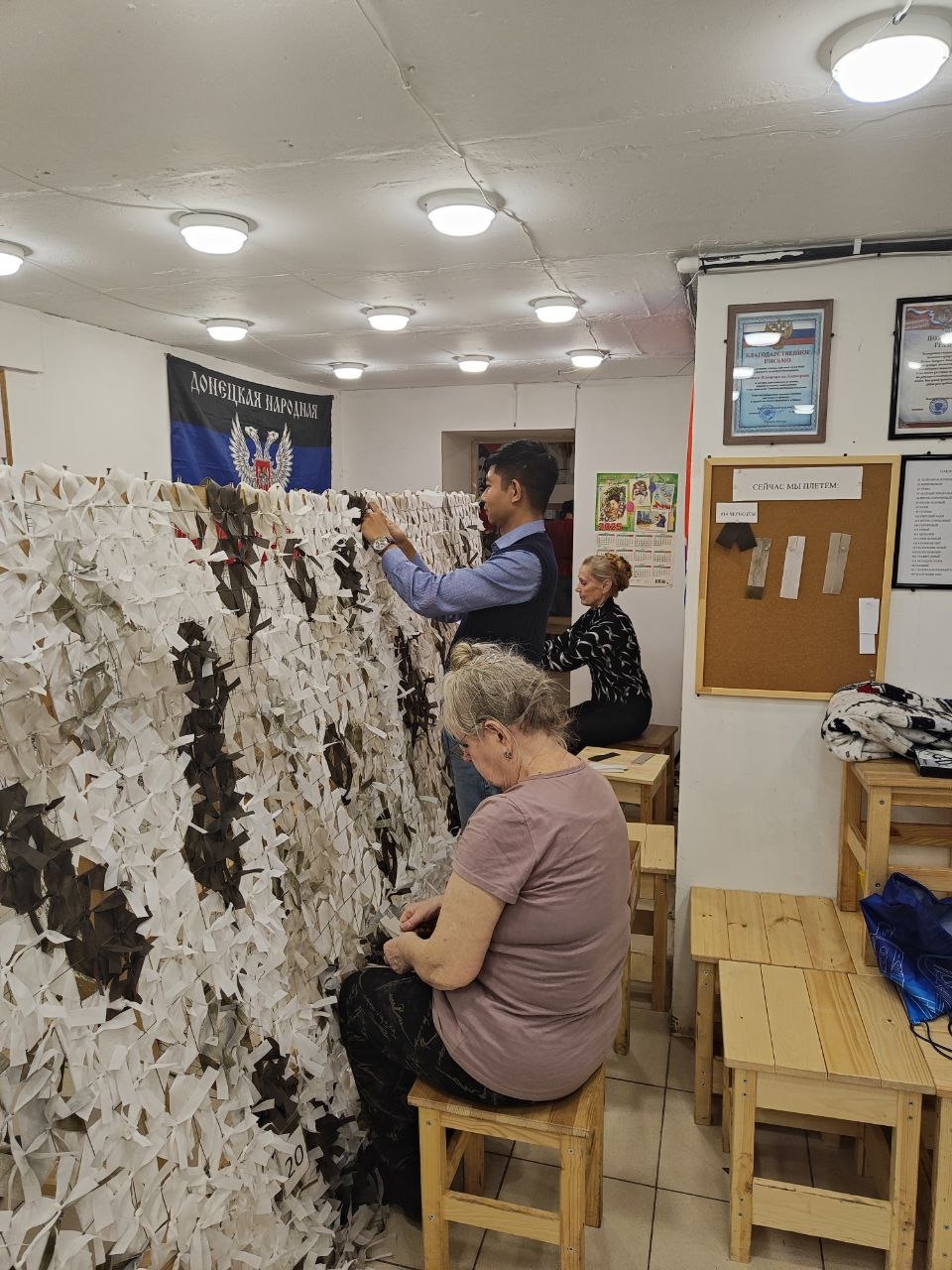 Поэтому Боевые Плетуны Ленинграда сразу же после отправки новогоднего груза вновь встали за стойку и продолжают вплетать ленту за лентой, тем самым приближая Победу!