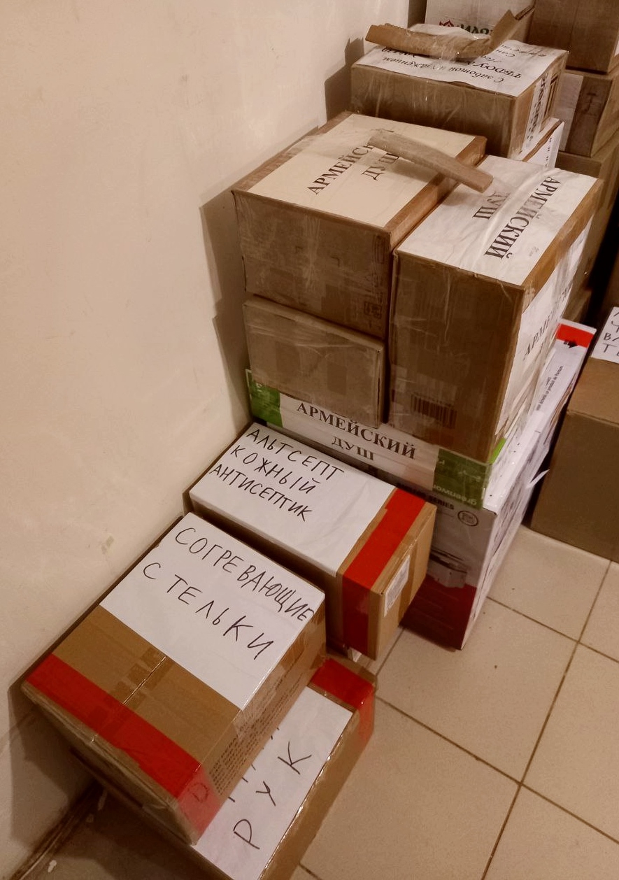 Приветствую вас, друзья! Ценный груз, собранный на недавнем (Ленинград, 25 и 26 октября) сборе помощи для бойцов на фронте, полностью рассортирован и подготовлен к отправке!