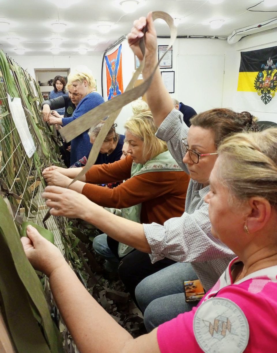 20 сентября в штабе фонда «Время выбрало нас» на Проспекте Стачек, дом 75 (город Ленинград), при поддержке администрации муниципального округа «Автово» был проведён мастер-класс по плетению маскировочных сетей. Наши золоторукие плетуньи – Анна, Людмила, Марина, Ольга и Елена не только поделились со всеми пришедшими основами и секретами своего мастерства, но и вместе с ними сплели очередную сеть, которая уже через несколько дней отправится на фронт!