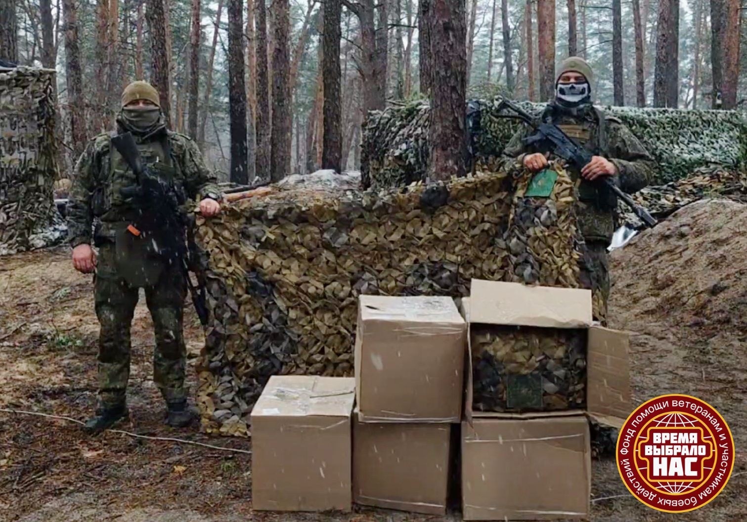 На нём команда фонда «Время выбрало нас» передаёт бойцам армии России замечательные подарки от Школа № 557 Санкт-Петербург – очень полезные и нужные в их непростой боевой работе!