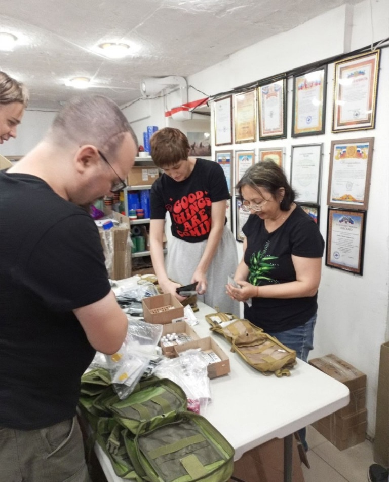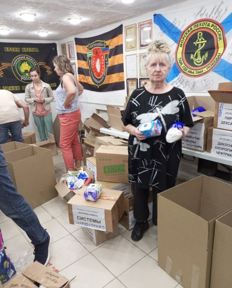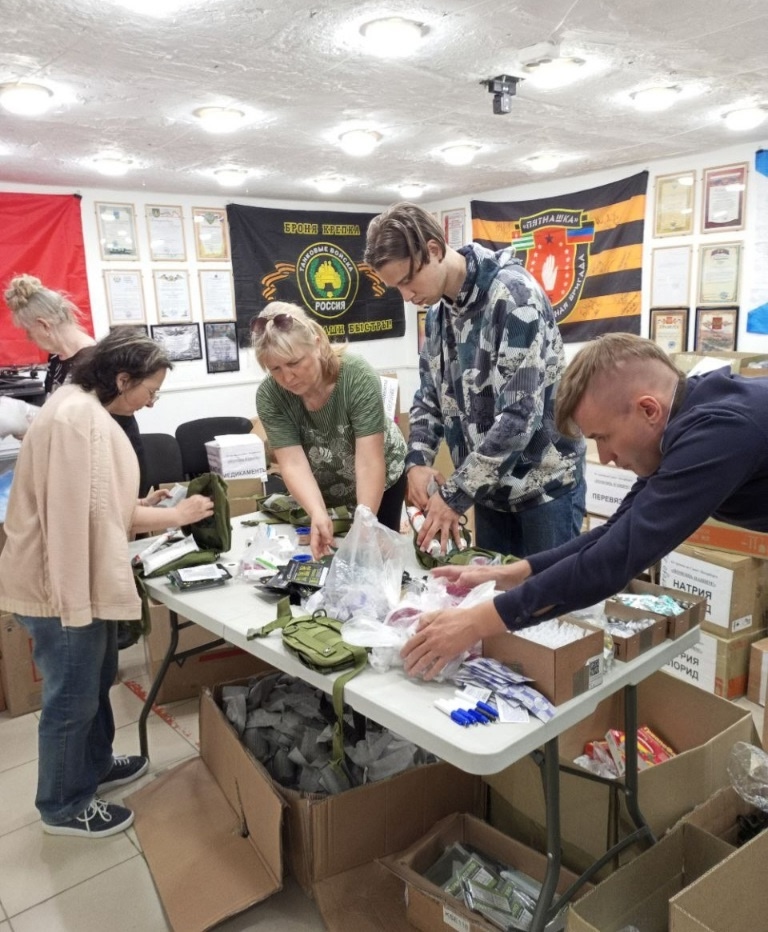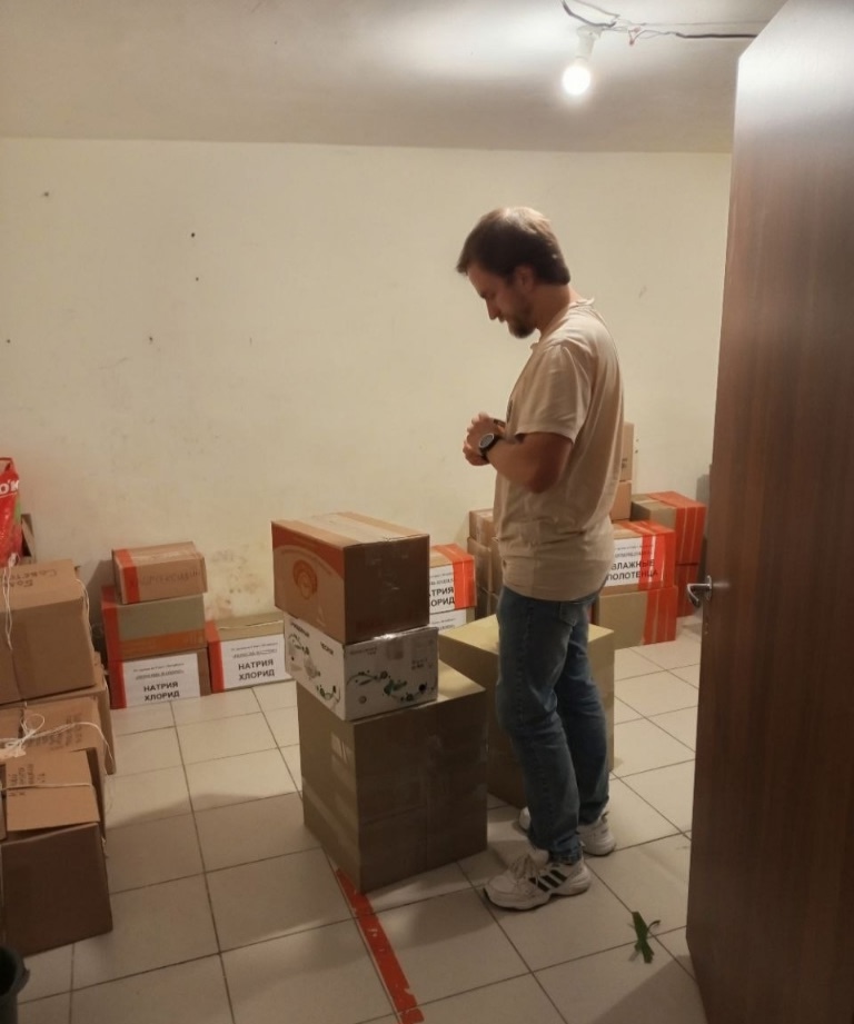 Работа кипела с утра и до вечера. Сортировали медицину, канцелярию для детей из двух школ-интернатов и собирали аптечки для бойцов армии России. Про них мы ещё напишем отдельно.