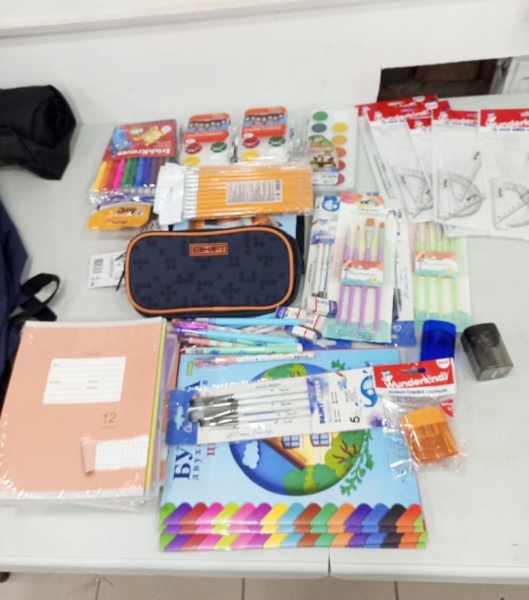 А для детворы, живущей в зоне ведения боевых действий, собрали канцелярские принадлежности, книги и лекарства.