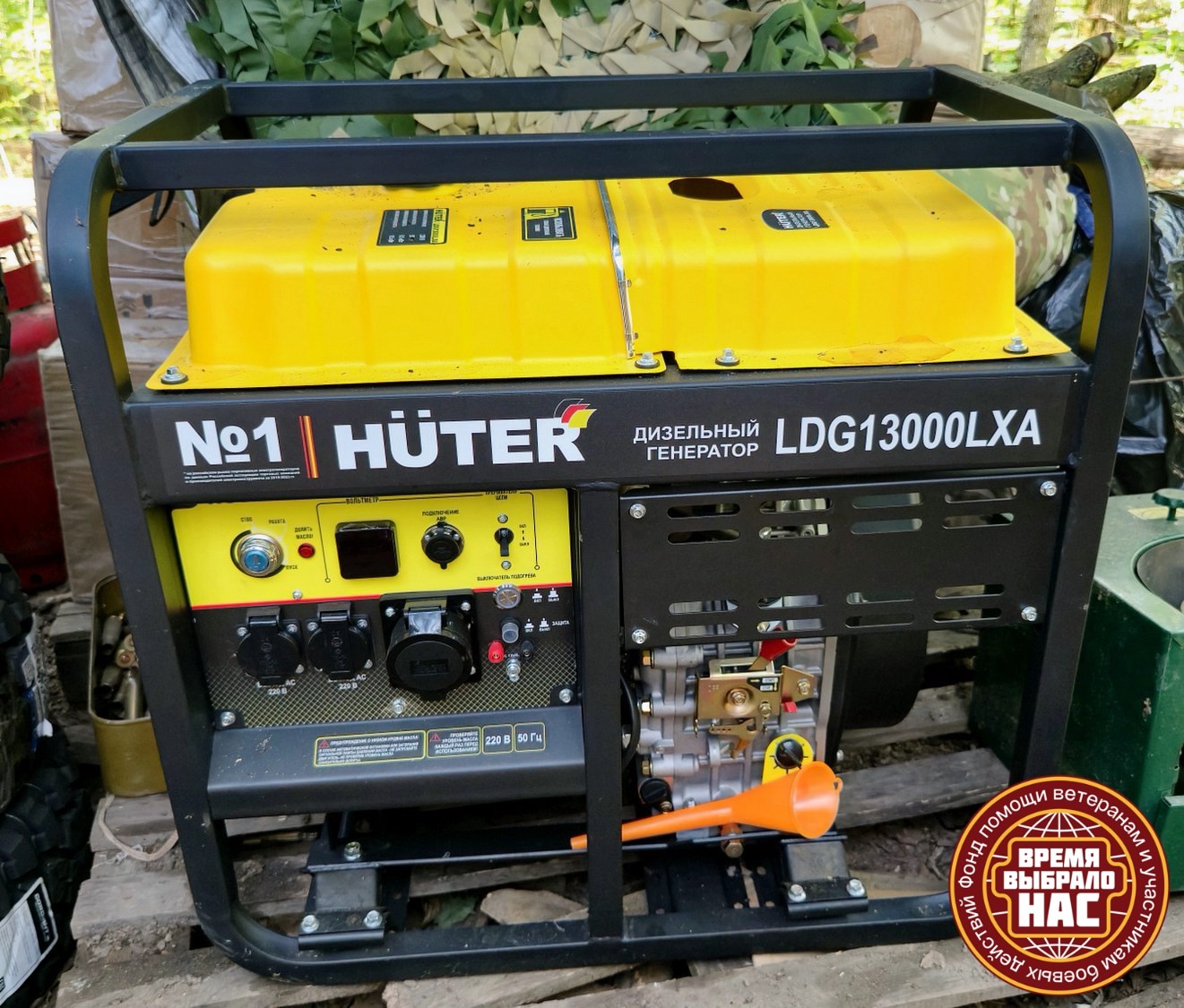 Дизельный генератор, который мы закупили для них весной этого года, чистый и полностью подготовленный к работе, хранится в специальном деревянном ящике под навесом. Вот пример уважительного и бережного отношения бойцов к помощи волонтёров.