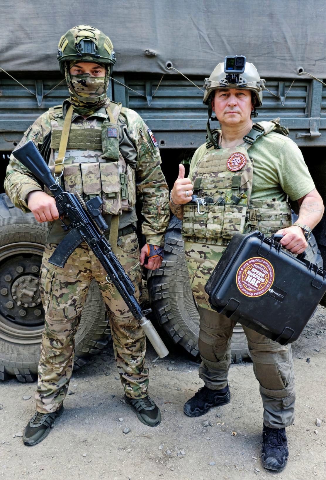 Всем привет! Команда Фонда «Время выбрало нас» продолжает свою работу в зоне войны! Передаём привезённое с собой оборудование, медикаменты и маскировочные сети нашим Защитникам – бойцам воюющих подразделений армии России!
