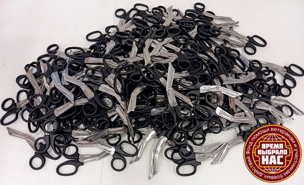 Закупили комплектующие для аптечек – отрывные подсумки, термоодеяла, тактические ножницы и армированный скотч.