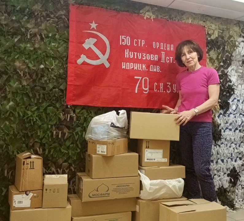 Благодарим нашего боевого товарища Галину за многолетнюю и очень эффективную поддержку парней на передовой. Ни один наш сбор в Ленинграде не проходит без её посылок с медикаментами, перевязочными средствами и прочими «ништяками», а ещё она всегда принимает самое активное участие в комплектации аптечек и подготовке грузов к отправке в зону ведения боевых действий.