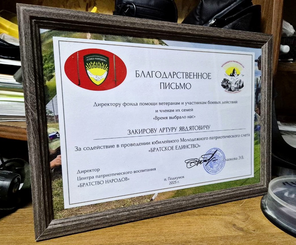 Фонд «Время выбрало нас» оказал посильную помощь в организации слёта «Братское единство» и мы намерены и в дальнейшем сотрудничать с ОД-МВСЦ "СВЯТОСЛАВ" в благородном деле патриотического воспитания нашей молодёжи.
