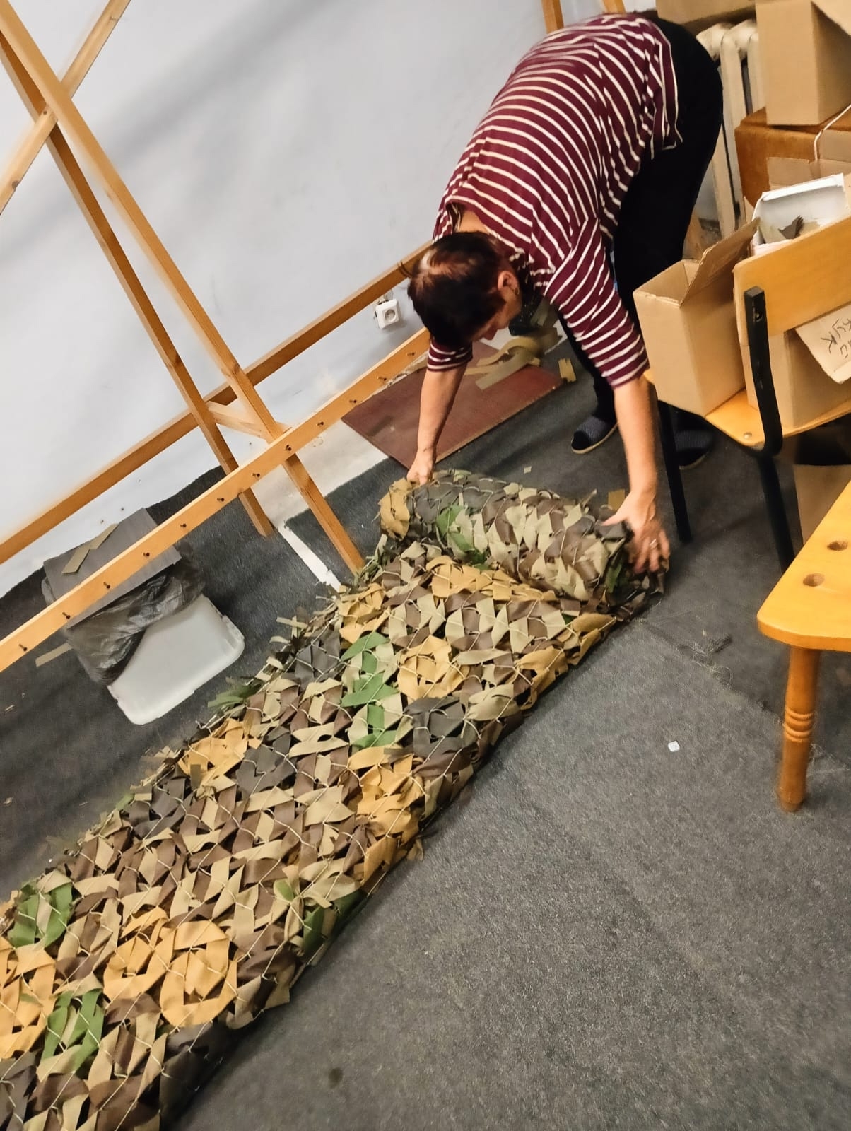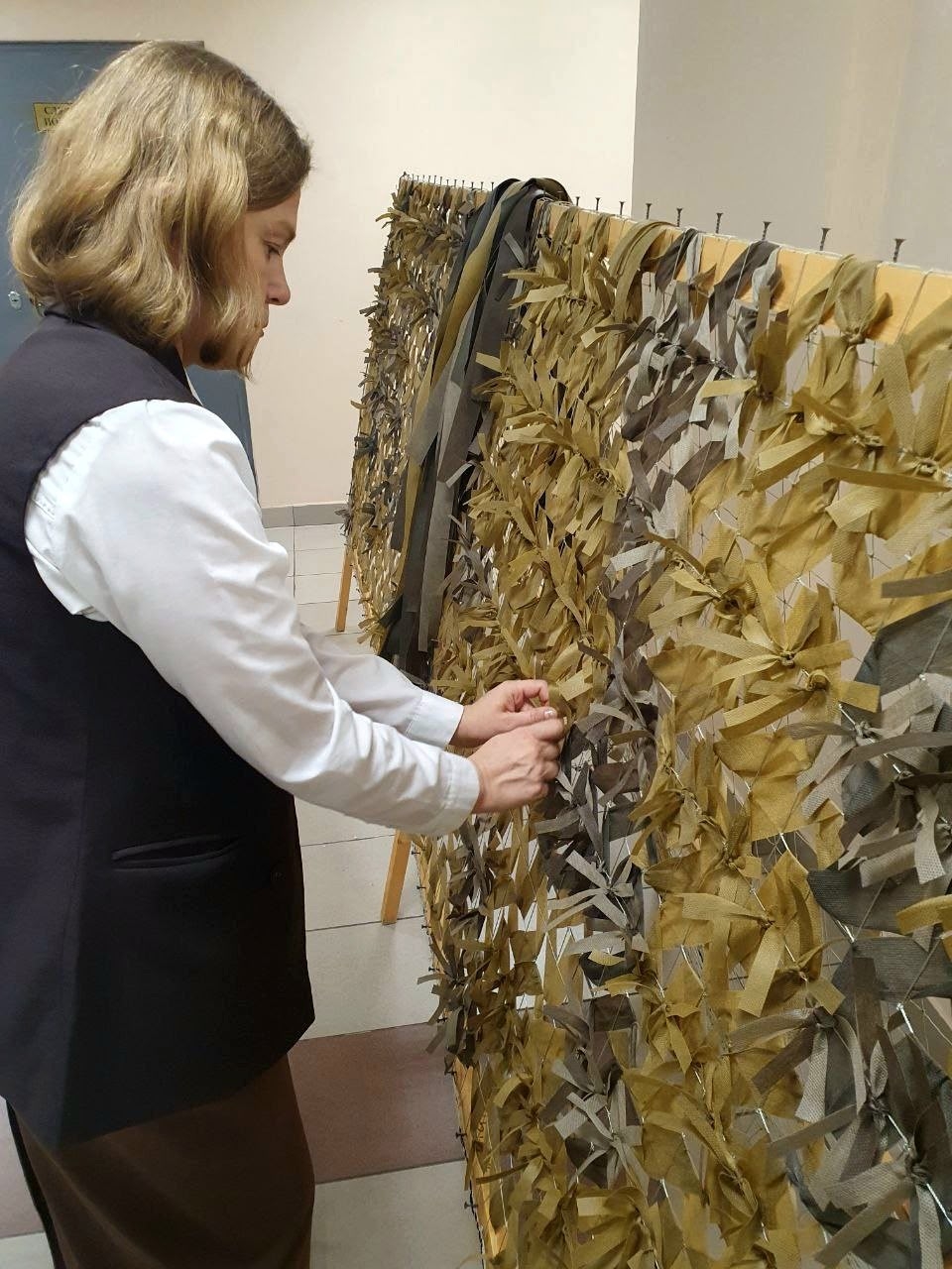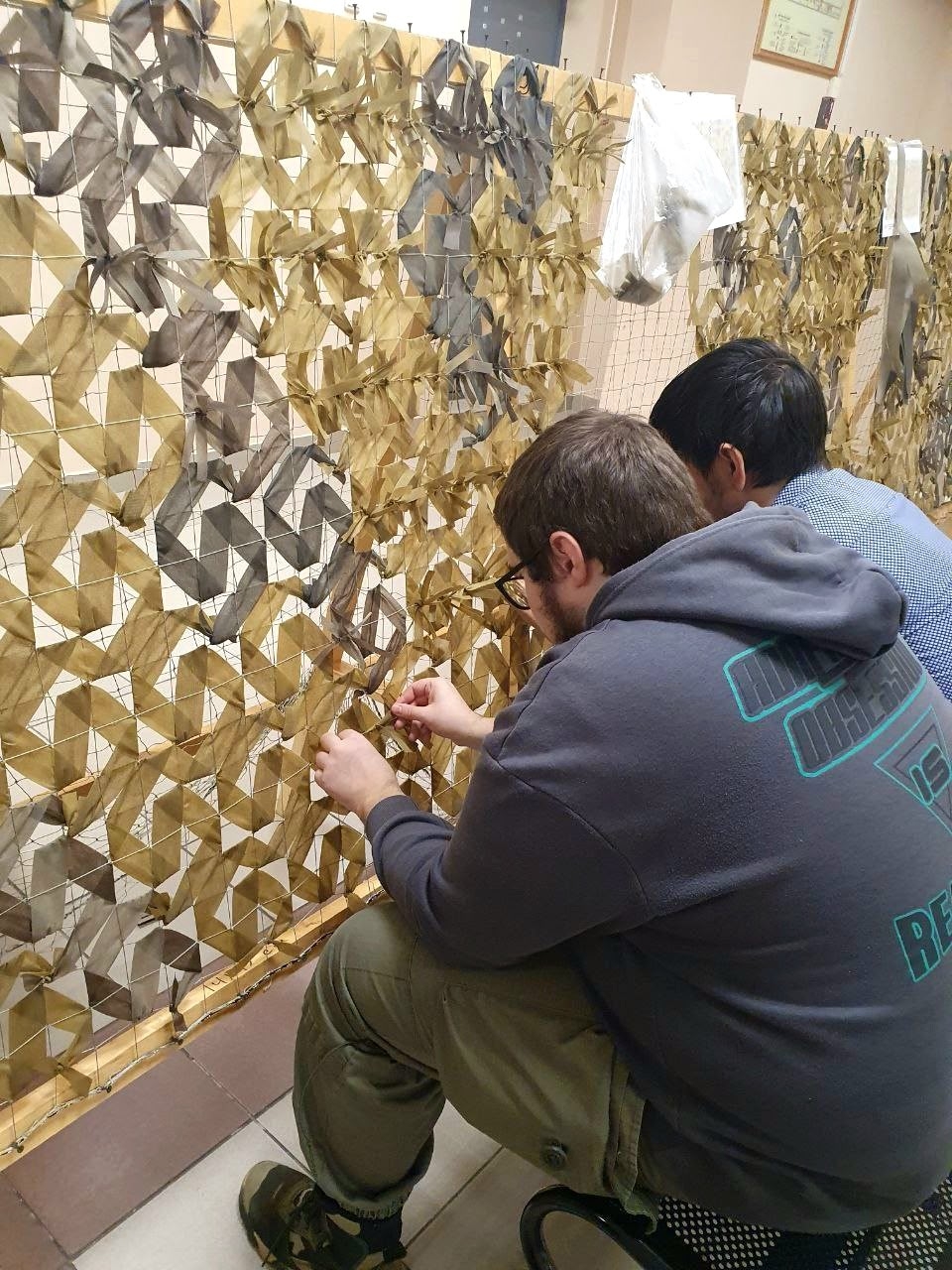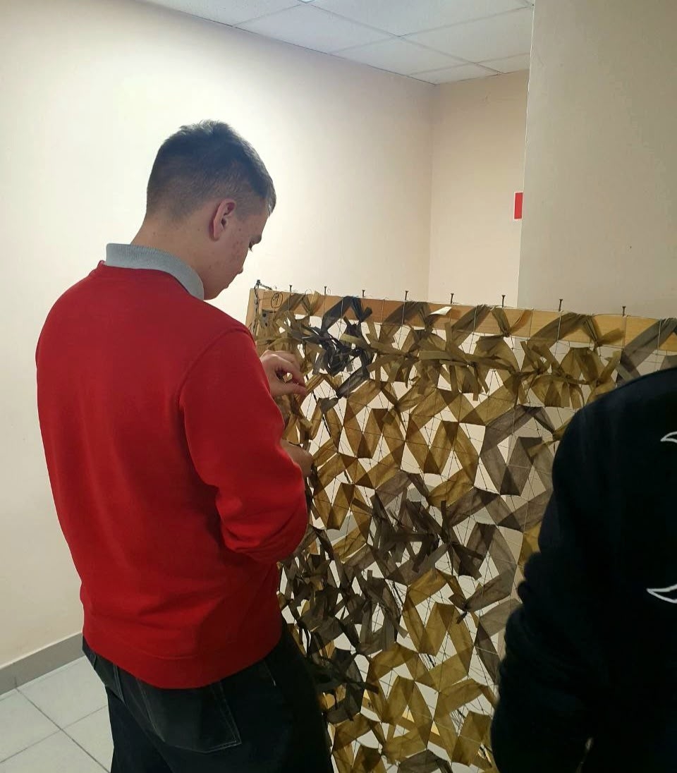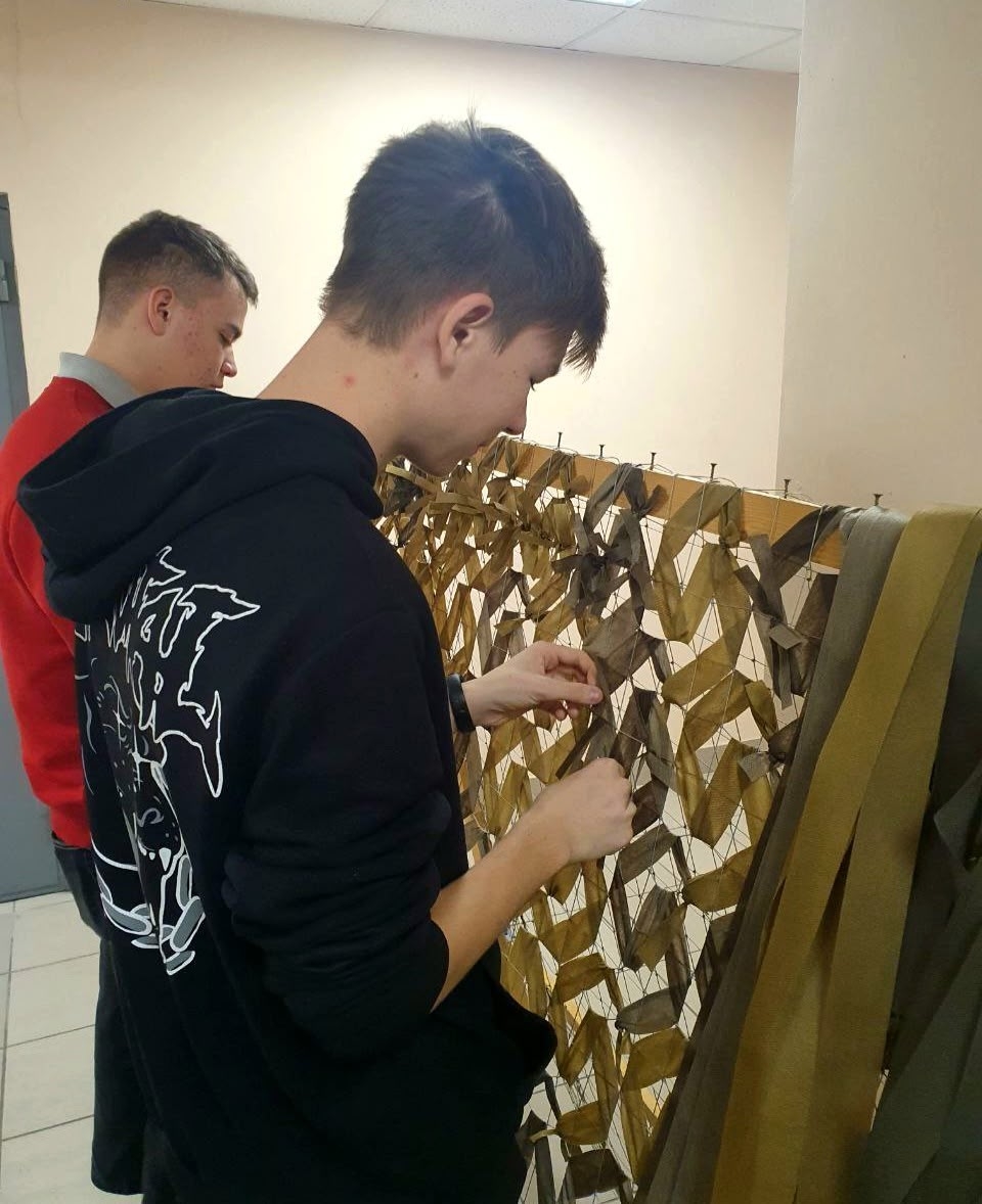 Юные Боевые Плетуны из СПБ ГБПОУ "Промышленно-технологический колледж" продолжают изготавливать маскировочные сети для воюющих подразделений армии России! В свободное от занятий время вместе с преподавателями они вплетают в основы джишку за джишкой или привязывают «паучки».