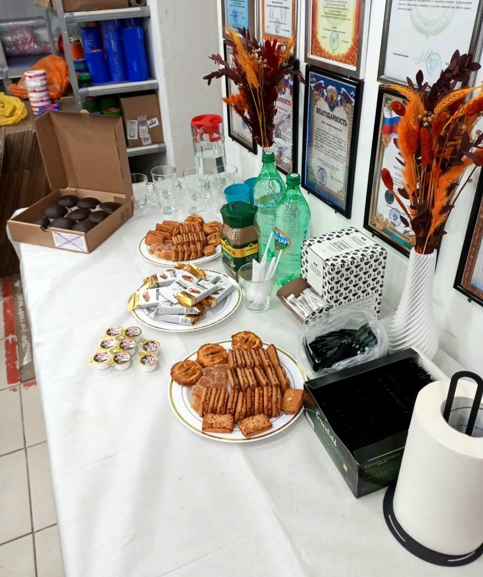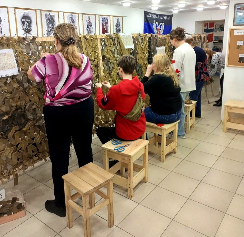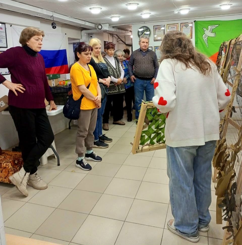 После показа гостям был предложен чай с угощениями и проведена экскурсия по Штабу, а после начался интересный процесс обучения вязанию маскировочных сетей.