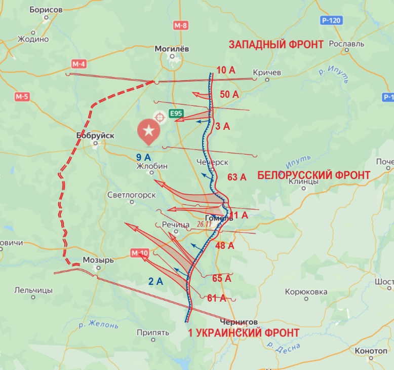 К 30 ноября советские войска вышли на рубеж Потаповка-Гамза-Прудок, Чаусы, западнее Петуховки, южнее Нового Быхова, восточнее Рогачева и Мозыря, южнее Ельска.